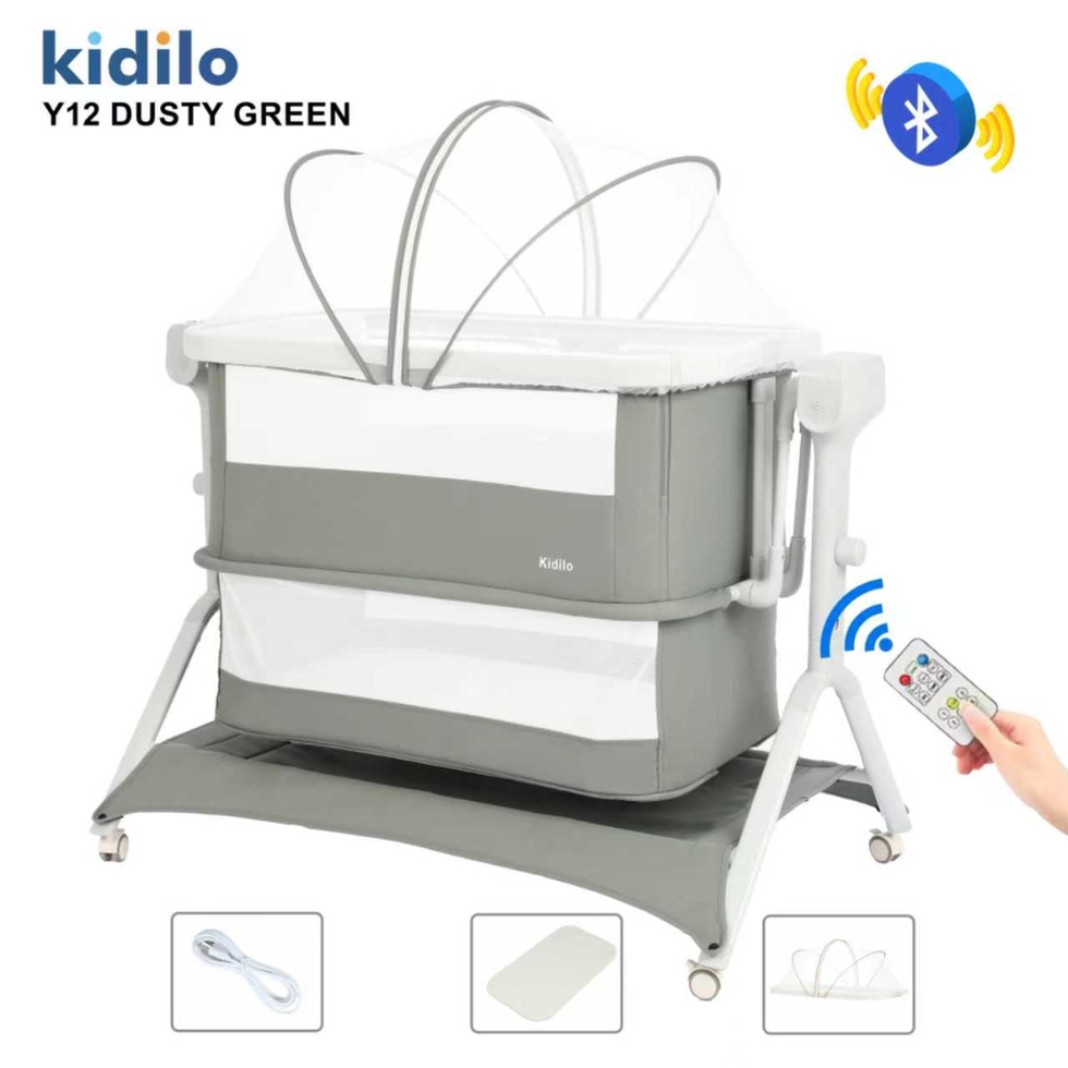 Create a cozy sleeping space for your baby with the Kidilo Y12 Newborn Travel Baby Rocking Bassinet Modern Foldable Bedside Crib designed to combine comfort, safety, and modern convenience for everyday parenting. This smart bedside sleeper features gentle rocking motions, a soft memory foam mattress, and soothing music options to help your baby relax and sleep better.